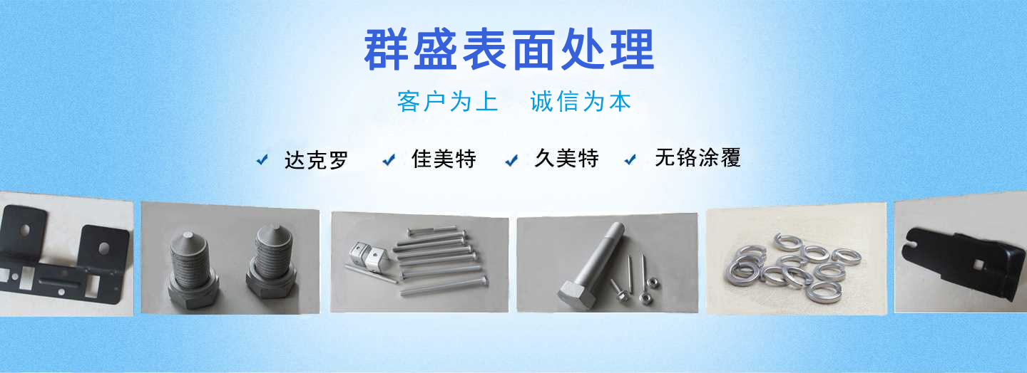 靖江市群盛表面處理有限公司,位于江陰長江大橋之畔靖江市城北園區(qū)山南路21號,成立于2007年3月。 公司引進了上海達克羅涂覆工業(yè)有限公司的全自動生產(chǎn)設備和溶液。技術(shù)人員曾多次在上海公司培訓,并得到該公司的技術(shù)支持。公司還配備了計量、理化檢測儀器和設備,以確保產(chǎn)品持續(xù)的品質(zhì)。公司的涂覆加工中心是質(zhì)量穩(wěn)定、設備優(yōu)良的達克羅、佳美特和無鉻涂覆加工基地。 公司現(xiàn)有六條自動流水生產(chǎn)線 ,月加工能力可達1000噸以上。憑借良好的生產(chǎn)設備和優(yōu)良的原料,賦予現(xiàn)場...